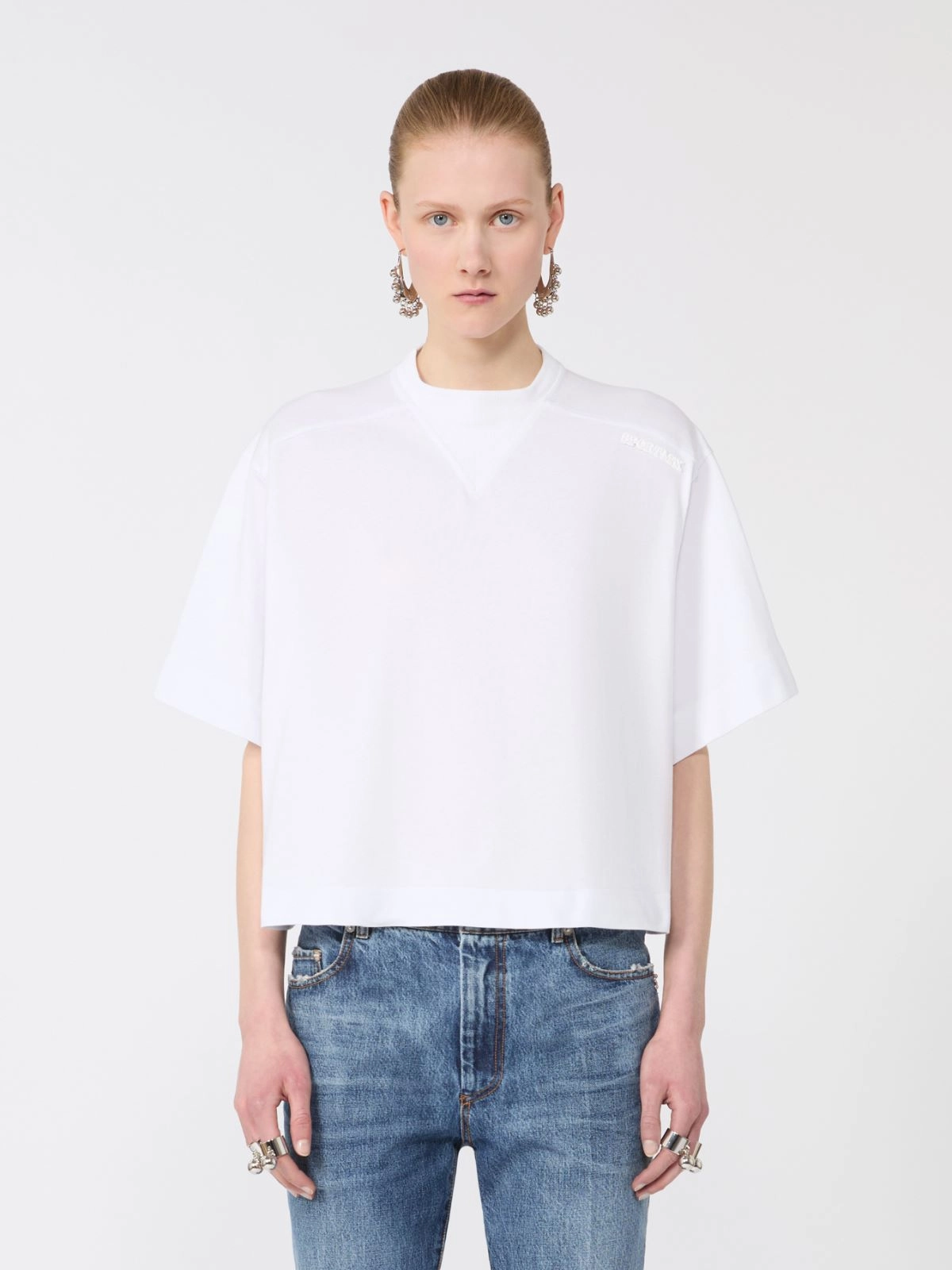 A contemporary evolution of the boxy t-shirt, designed with an original crater neck emphasised by the ribbed insert. The fit is straight over the torso with small on-tone logo printed on the left shoulder.